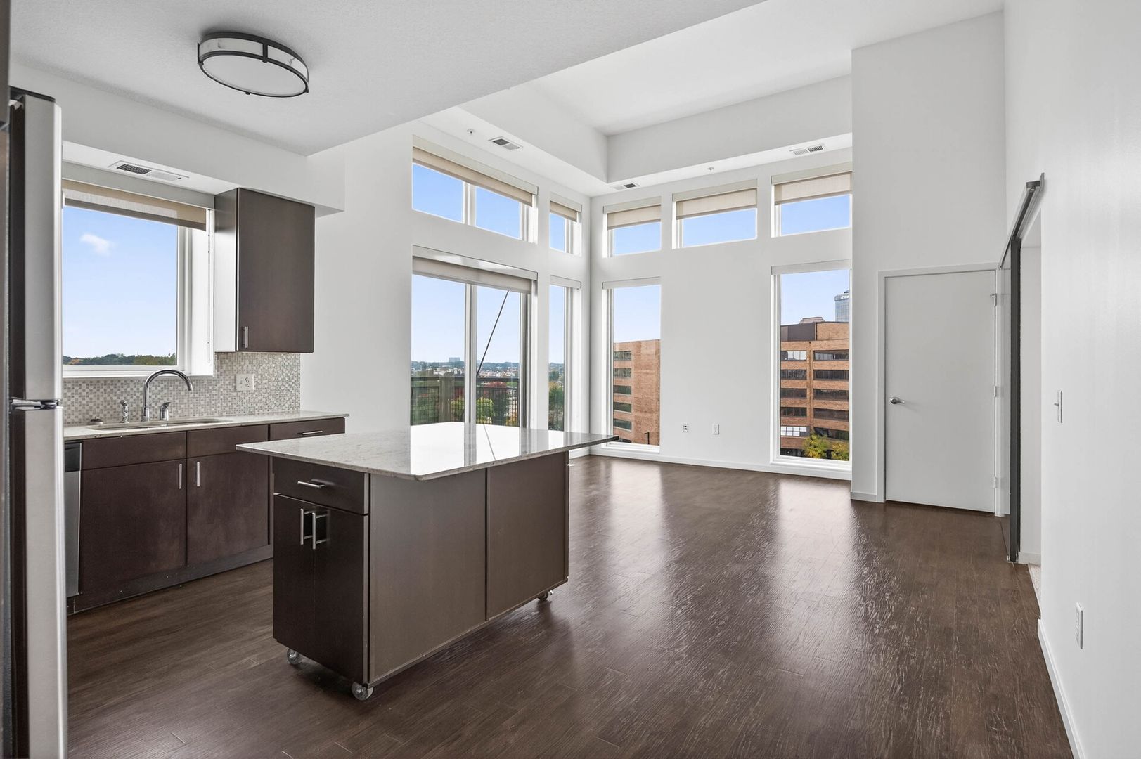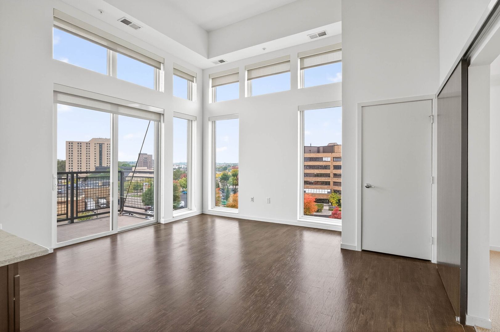 Warm and inviting espresso luxury vinyl plank flooring flows seamlessly throughout, enhancing the refined aesthetic. Thoughtfully placed upgraded LED lighting casts a soft, welcoming glow, while the western exposure bathes the space in beautiful natural light with the added windows from the lofty vaulted ceiling. The spacious living area extends effortlessly to a private west facing balcony, offering a serene setting to enjoy a morning coffee or unwind in the evening.