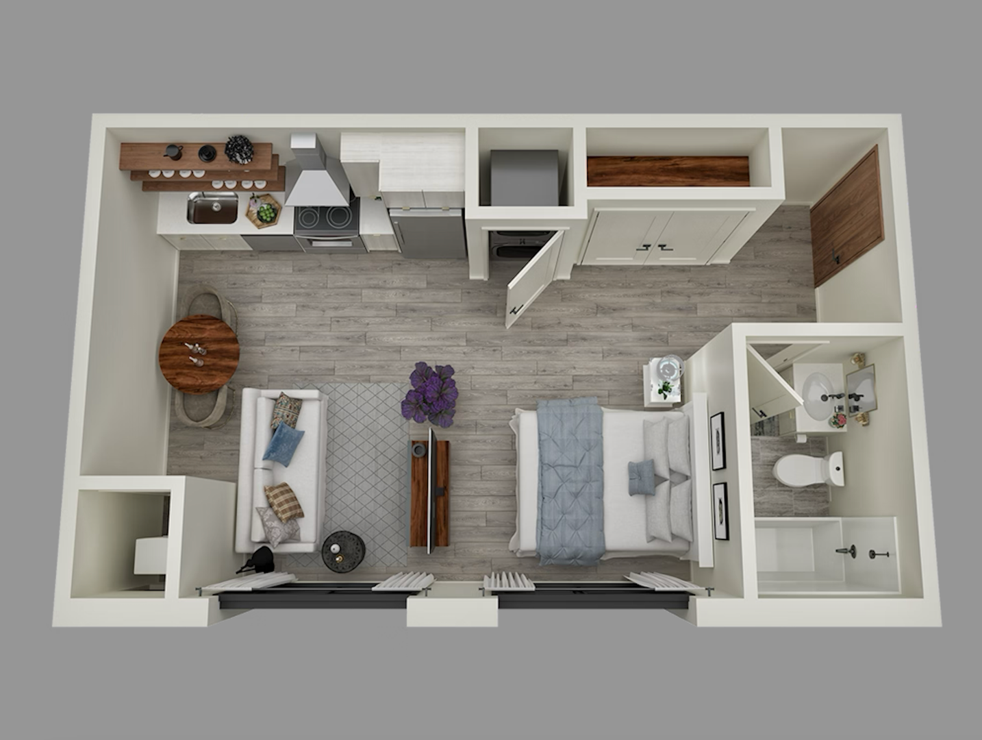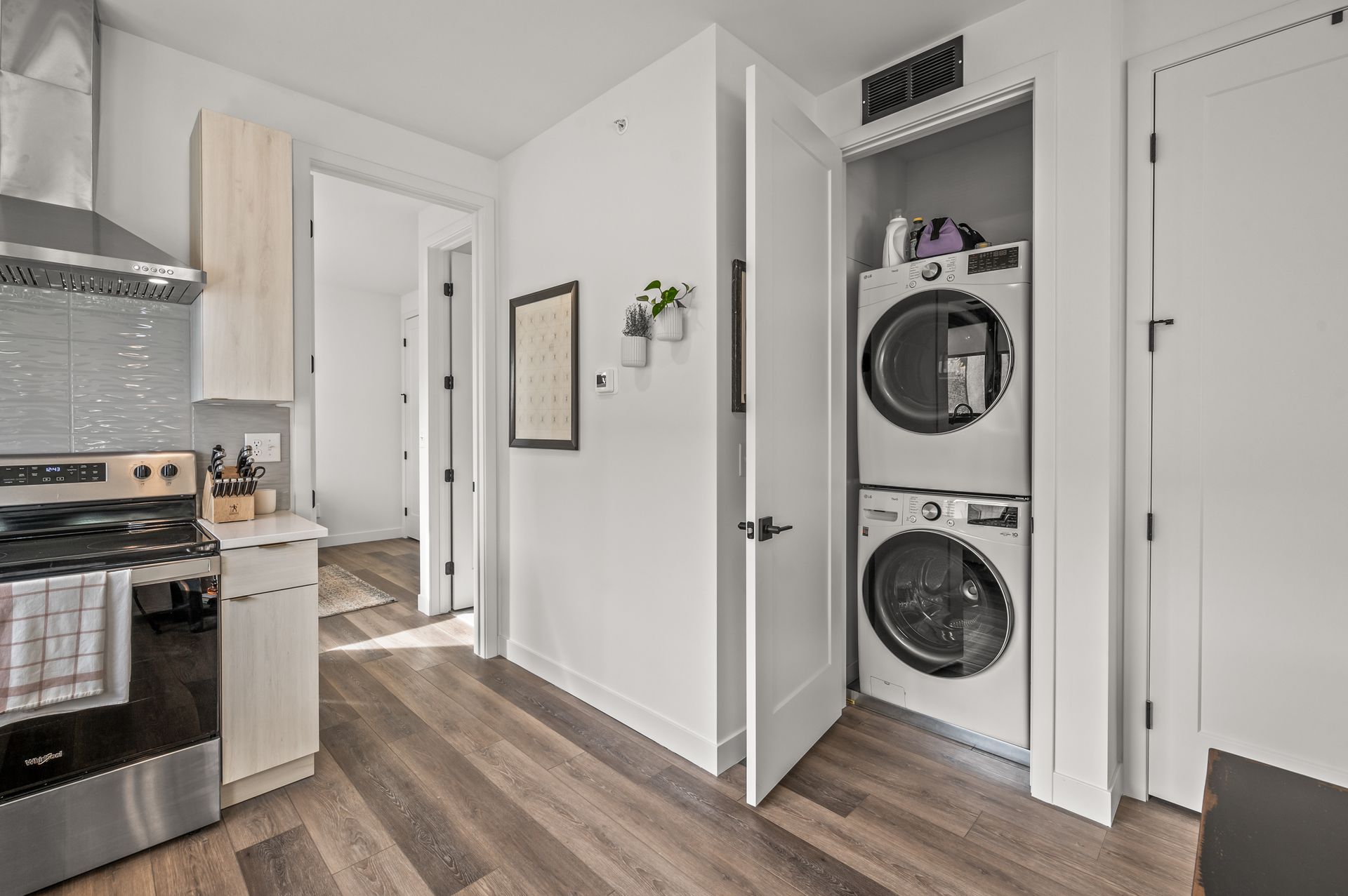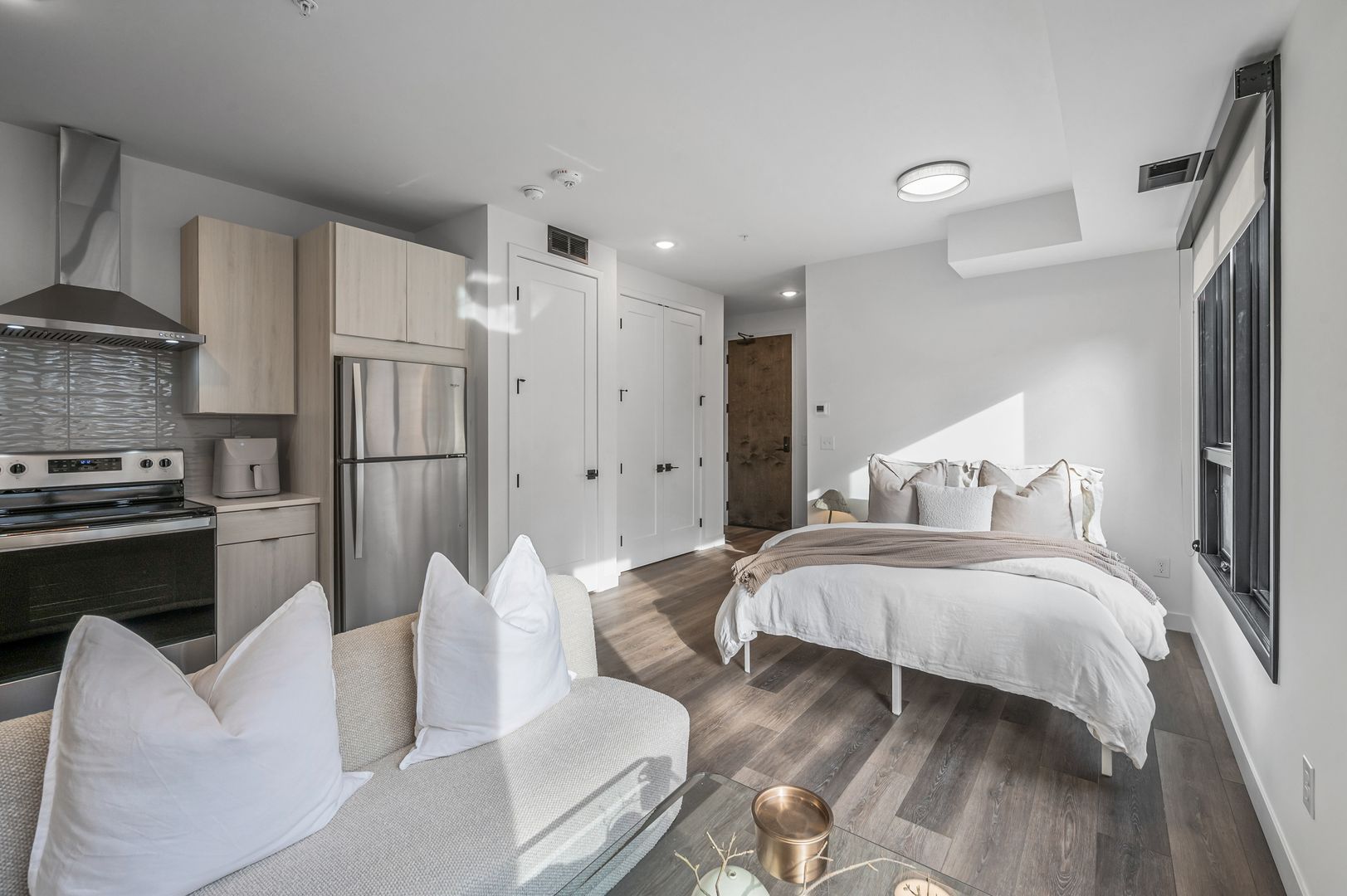 A one bedroom unit with in-unit washer/dryer, large modern