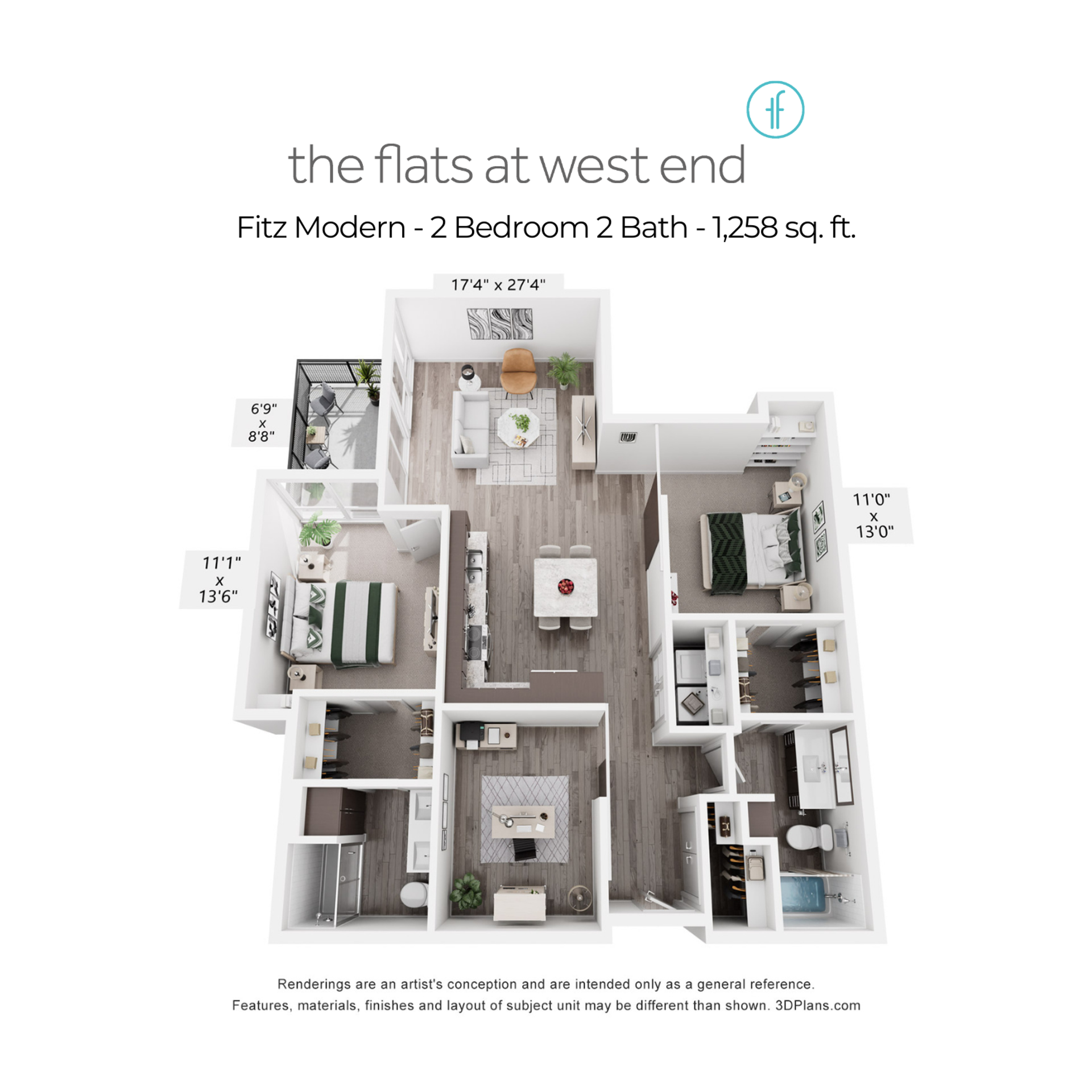 Designed for effortless living, this apartment includes the perfect office space with the spacious den, walk-in bedroom closets for optimal storage and a full size, front-load, side-by-side washer and dryer for ultimate convenience. Every element has been curated for modern comfort and timeless elegance. Don’t miss the chance to experience this elevated living space—schedule a tour of the Fitz Modern Flat today!